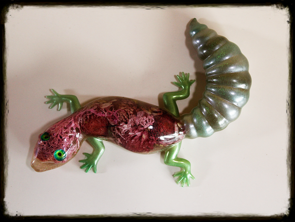 Material: Epoxidharz, getrocknete Blüten, Augen aus Kunststoff